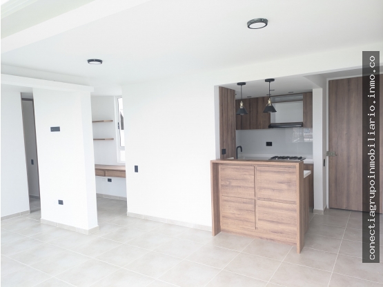 Este lindo apartamento cuenta con 2 habitaciones con closet (principal con baño), baño social, (los baños cuentan con ducha con divisiones de vidrio y elegante grifería negra tipo lluvia con iluminación LED integrada), cocina integral abierta, equipada con elegantes gabinetes de madera clara, estufa empotrada, horno integrado y campana extractora. sala - comedor con balcón amplio e iluminado, zona de estudio/oficina en casa cuenta con escritorio empotrado y repisas de madera, zona de aseo, parqueadero propio.